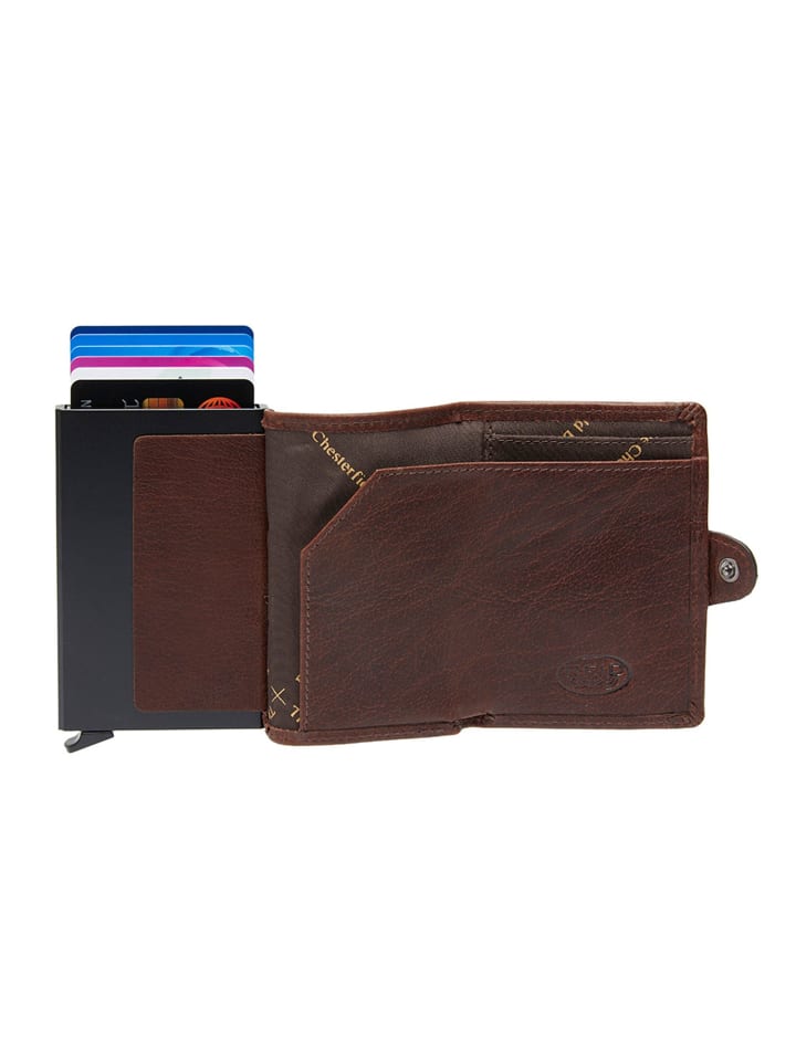 Компактный, элегантный дизайн, высочайшее качество и безопасность сочетаются в этом корпусе для кредитных карт от бренда Chesterfield. В прочном алюминиевом корпусе может поместиться до 6 карточек, которые выдвигаются в упорядоченном порядке одним нажатием кнопки. Кроме того, чехол оснащен защитой RFID от кражи данных. Стильный чехол из высококачественной кожи придает индивидуальную элегантность и имеет дополнительные отсеки для карточек, а также отделение для банкнот и карман для карманов на задней панели для счетов или других мелких ценностей.