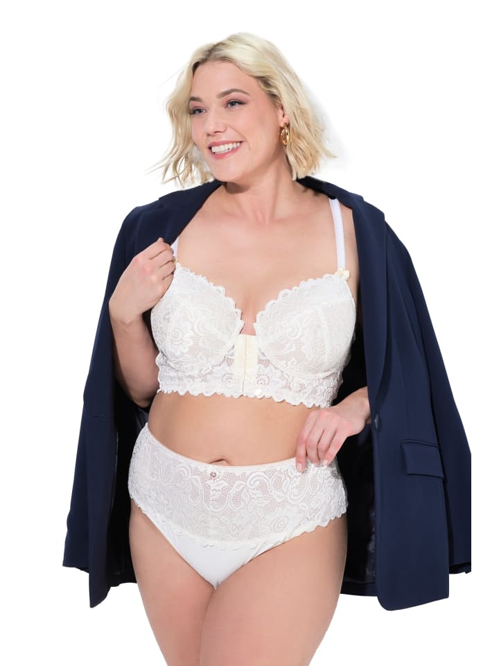 Трусики-стринги с высокой талией из непрозрачного кружева. Материалы: Подкладка: 100% хлопок; Внешний материал: 90% полиамид; 10% эластана