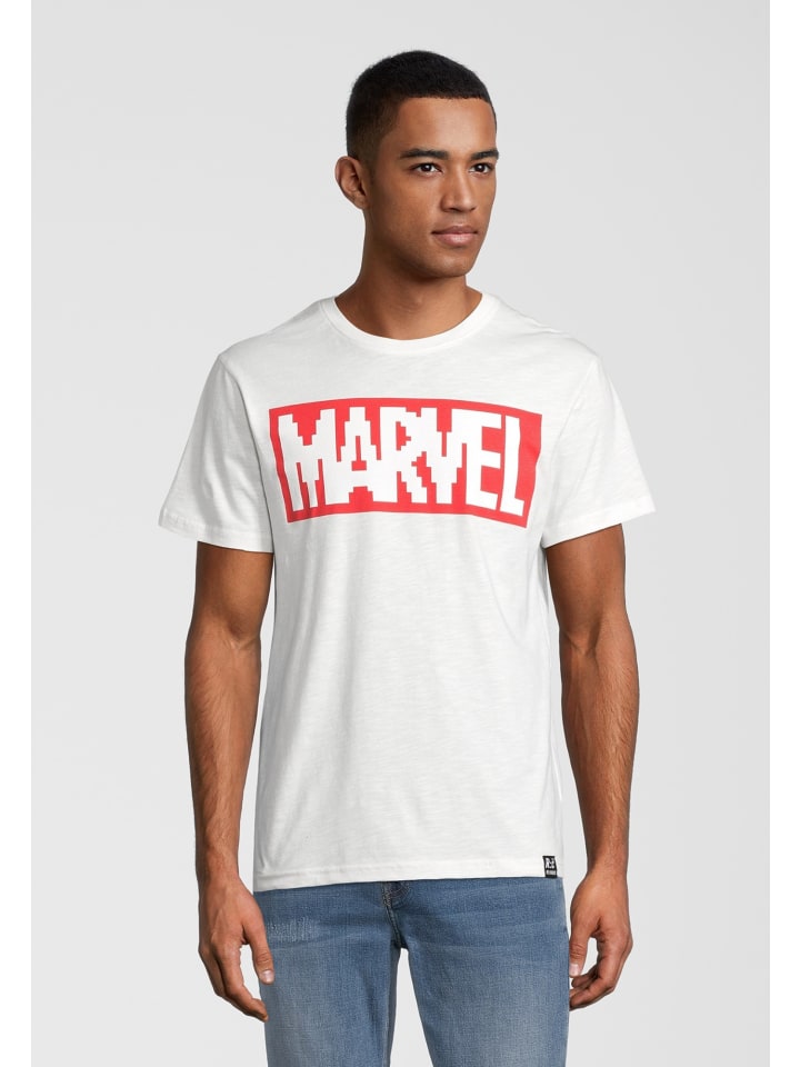 - Стильный принт с логотипом Marvel в пиксельном стиле