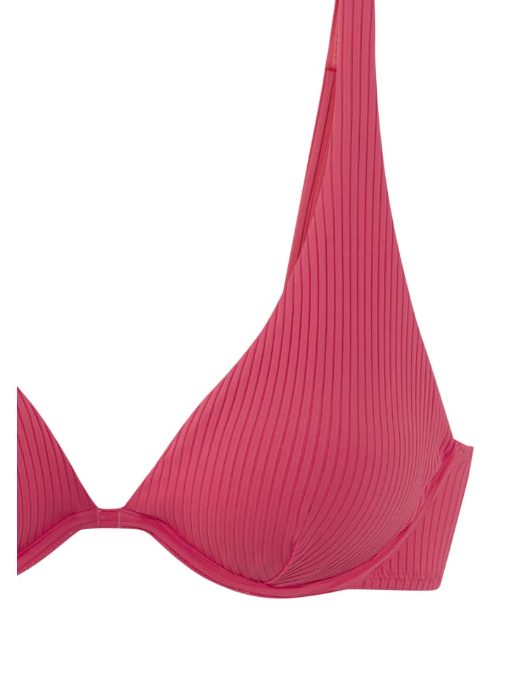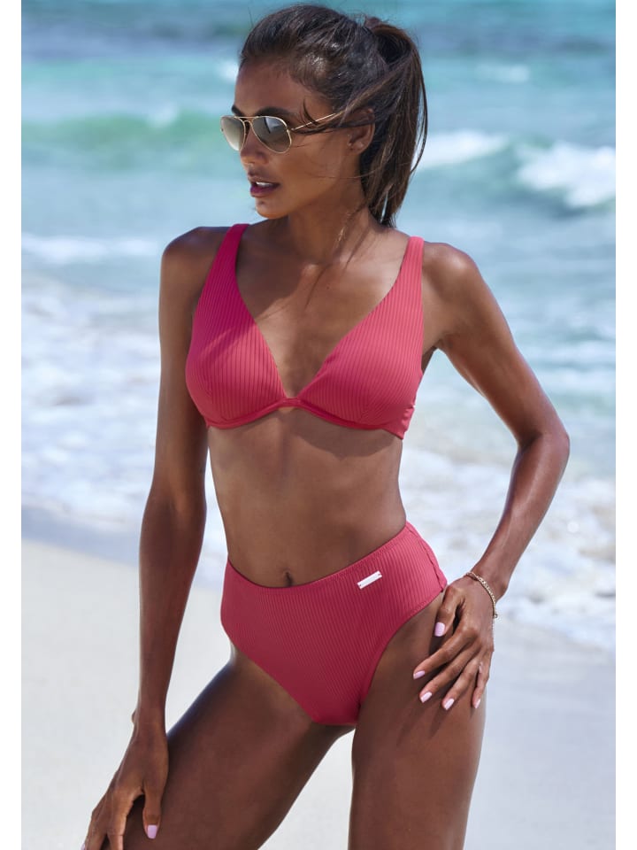 Бикини на косточках от Elbsand. Однотонный дизайн. Модная ребристая структура. Верх со съемными мягкими чашками и регулируемыми бретелями. Плавки с завышенной линией брючин и небольшой эмблемой. Фактурный материал. - Модная ребристая структура