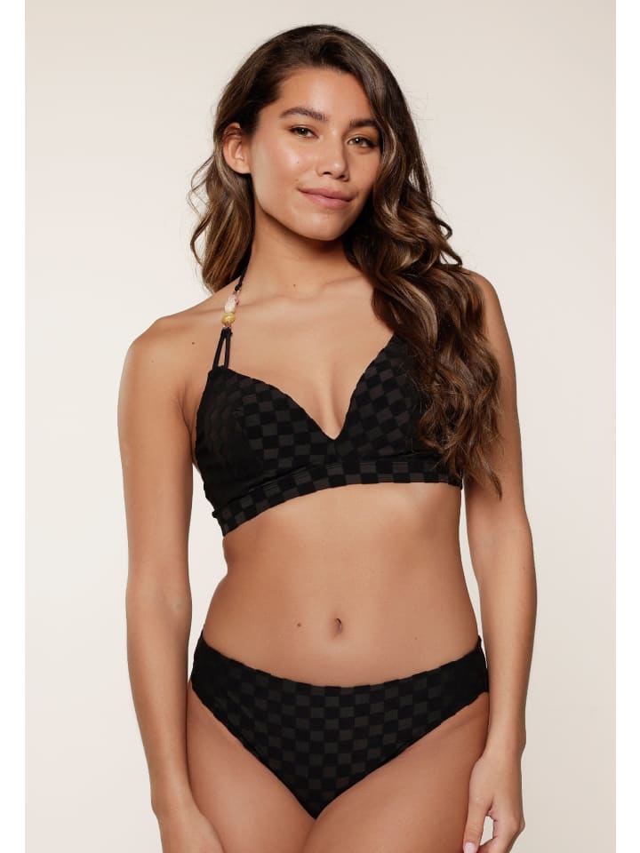 Готовы сиять! Этот комплект состоит из предварительно сформированного треугольного верха бикини с регулируемыми бретелями на шее. В комплект входят соответствующие плавки бикини! Аксессуары на лямках завершают образ!