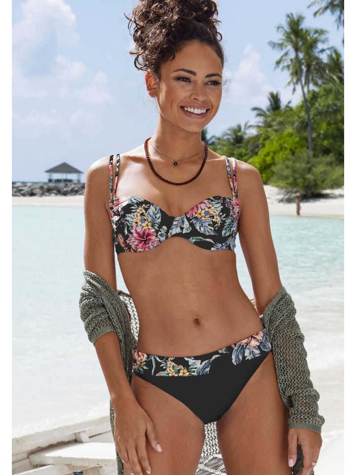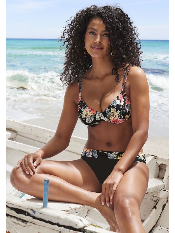 С отложным поясом: симпатичные плавки бикини от Lascana. Цветочный принт по всей поверхности – каждое изделие уникально. Из серии «Микс-Кини». Приятное качество с переработанным полиамидом.