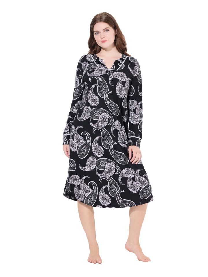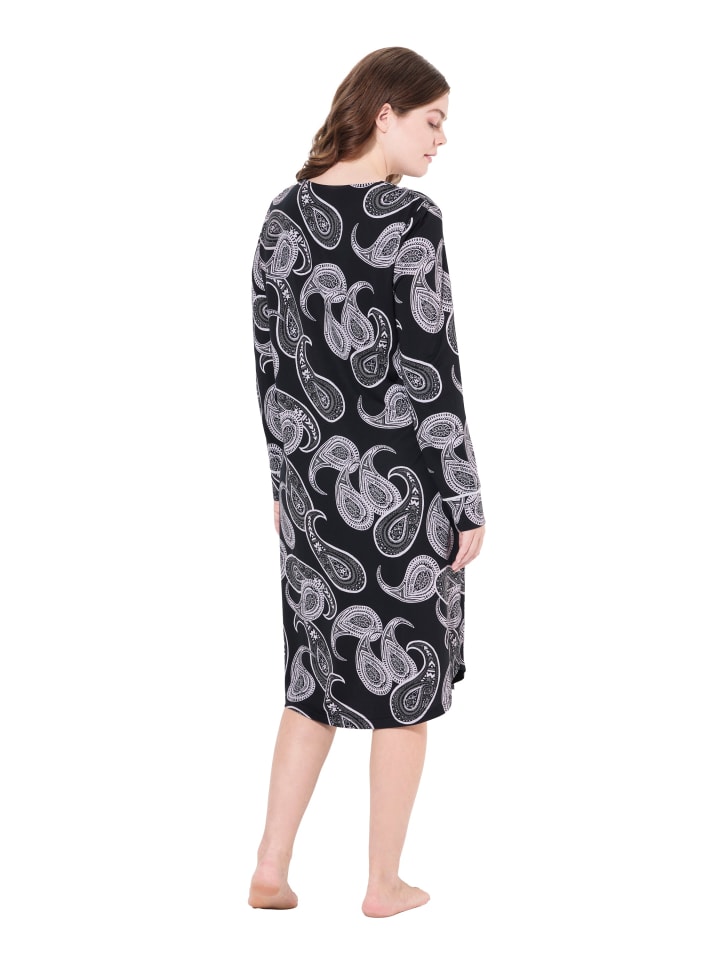 Ночная рубашка с узором пейсли. Вставка по горловине и длинные рукава с декоративной окантовкой. Закругленный подол. Материалы