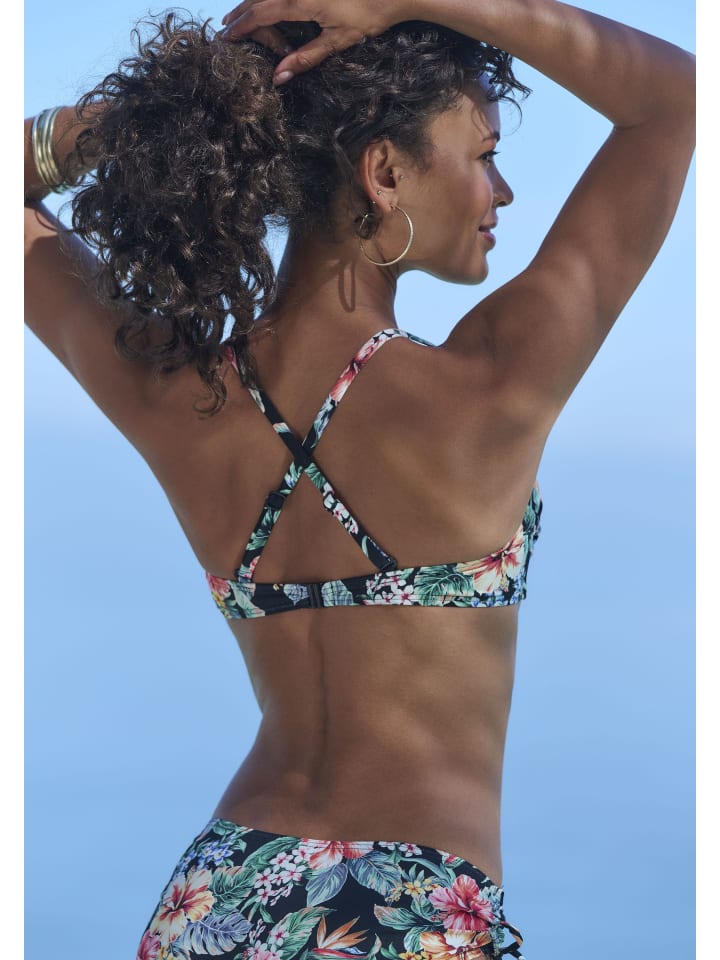 Лиф-бандо на косточках от Lascana. Цветочный принт по всей поверхности – каждый топ уникален. С мягкими чашками и съемными бретелями. Из серии «Микс-Кини». Приятное качество с переработанным полиамидом.