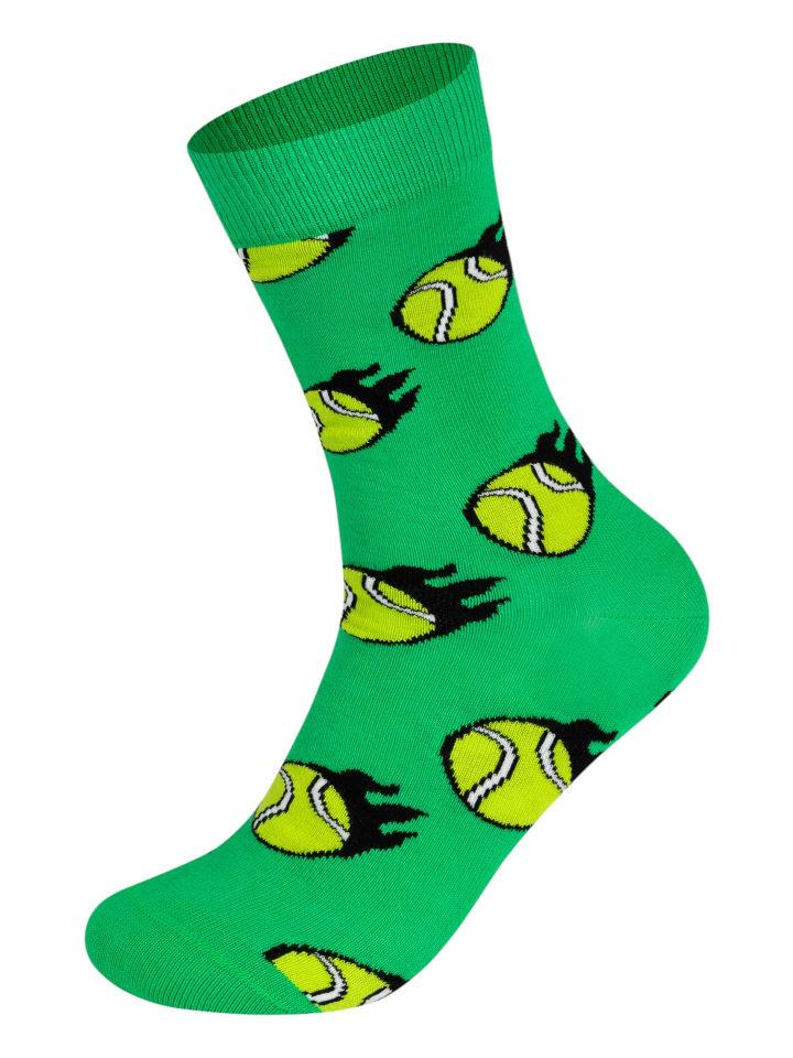 С нашим подарочным набором из двух пар высококачественных теннисных носков, упакованных в стильную подарочную коробку, вы можете сопровождать своих лучших друзей на теннисный корт и придать им особый стиль. Эти носки идеально подойдут любителям тенниса, обеспечивая как эффективность, так и комфорт, что делает их идеальным подарком для всех, кто любит этот вид спорта. - Носки с теннисным кортом, теннисным мячом