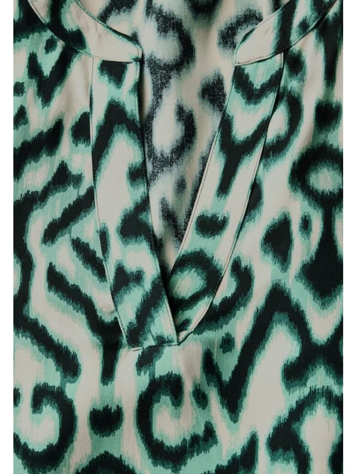 Женская блузка Street One, Хантер Грин Женская блузка Street One с рисунком и круглым вырезом с вырезом добавляет модных штрихов своим графическим узором. Мягкая вискоза придает плавный и женственный вид, а также создает ощущение комфорта при ношении. Круглый вырез с разрезом придает блузке современный вид и позволяет удобно входить в нее. Короткие рукава обеспечивают удобную свободу движений и идеально подходят для теплых дней. Графический узор придает блузке модный вид и делает ее универсальным предметом гардероба для различных случаев. Будь то в офисе, на прогулке по городу или на встрече с друзьями, эта блузка - всегда отличный выбор. Блузка изготовлена из 100% вискозы, мягкого и дышащего материала, который приятно ложится на кожу. За ней легко ухаживать, и она меняет свою форму и цвет даже после нескольких стрижек. Женская блузка Street One от Hunter Green, имеющая размер 44 дюйма, идеально сочетается с джинсами или модными брюками. Наденьте эту модную блузку прямо сейчас и почувствуйте комфорт и стиль блузки Street One!