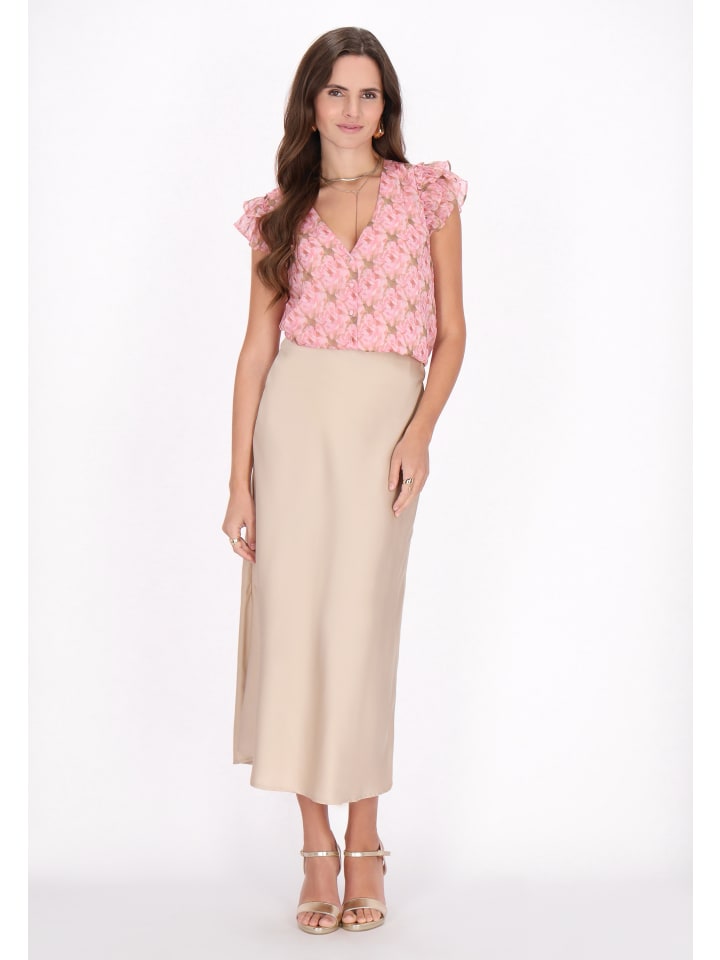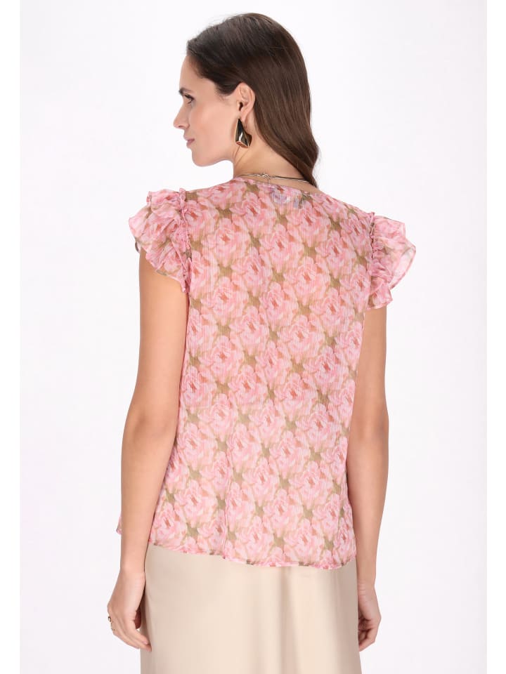 - Regular Fit Blouse With V Neck And Ruffle Cap Sleeves