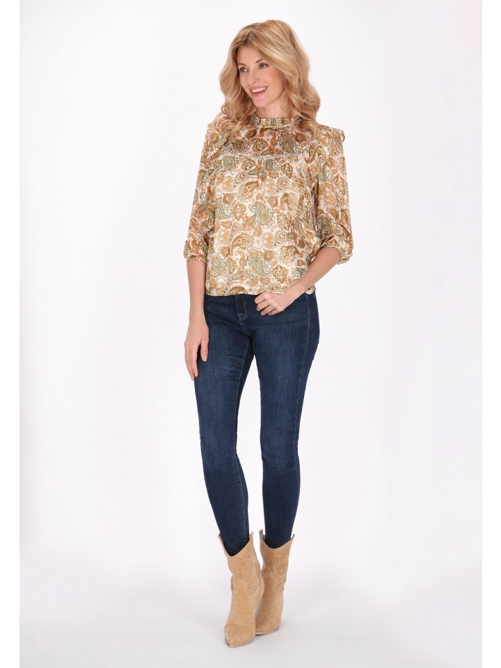 - Regular Fit Blouse With Stand Collar And 3/4 Sleeves