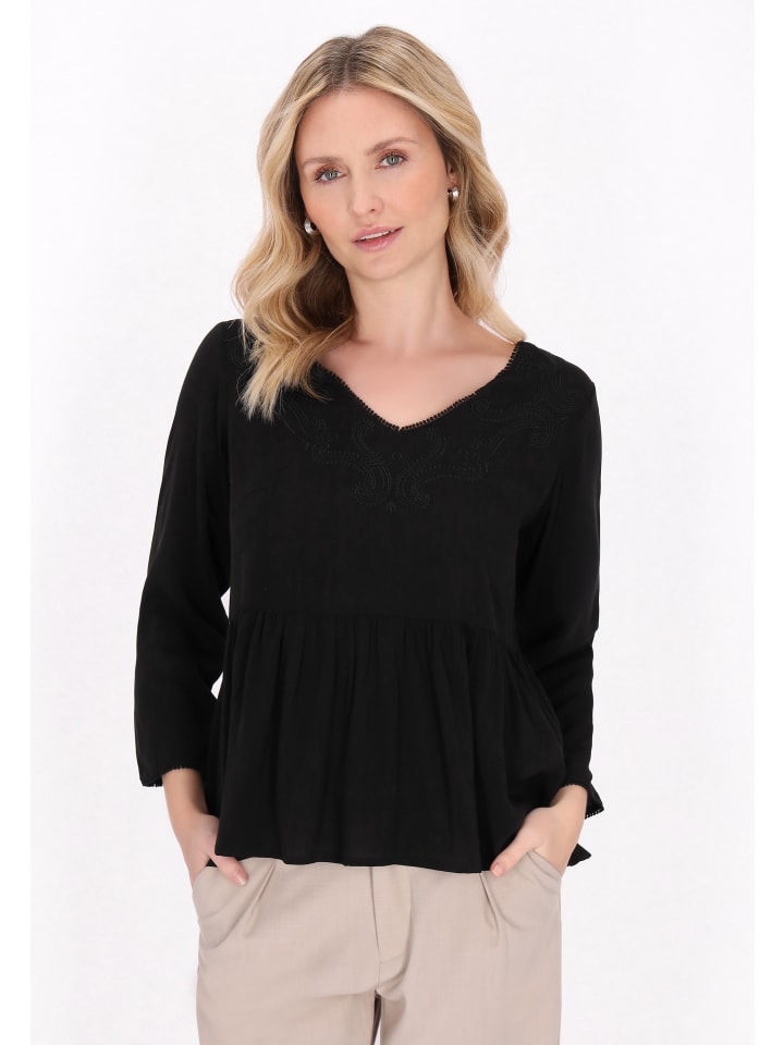 - Regular Fit Blouse With V Neck And 7/8 Sleeves
