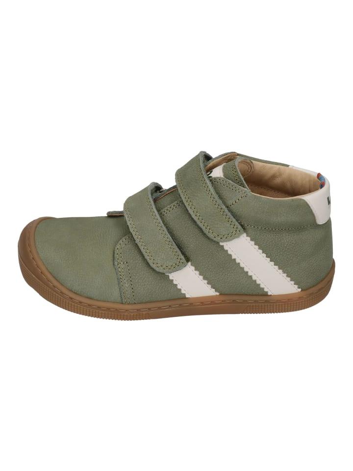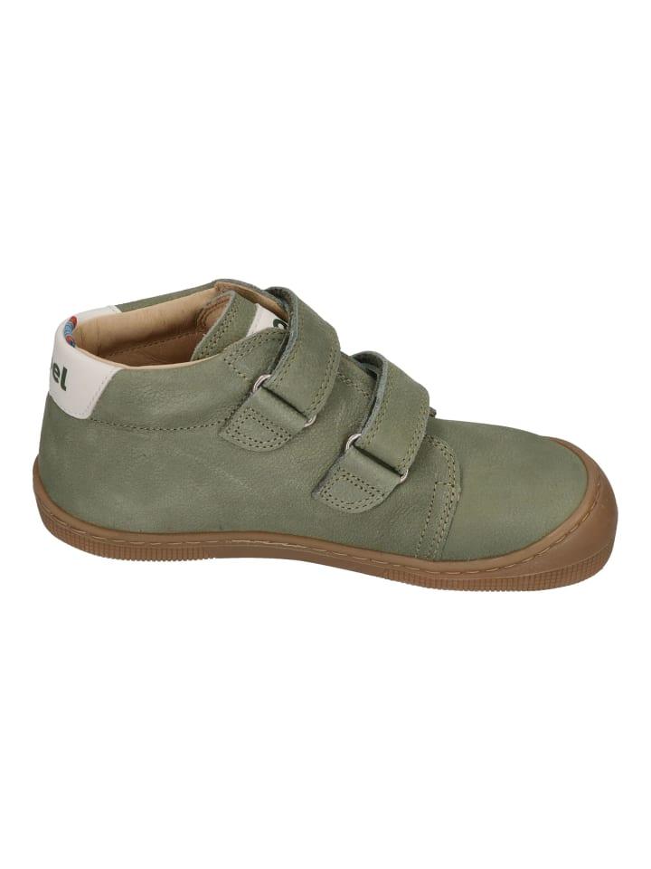 Детская обувь KOEL Barefoot - DAVID LEATHER оливково-зеленого и белого цветов - идеальный выбор для активных детских ножек. Верх из гладкой кожи обеспечивает прочность и удобство ношения. Материал интерьера из кожи гарантирует воздухопроницаемость и комфорт. Благодаря 2 застежкам на липучке обувь очень легко надевать и снимать.  Нескользящая и сверхгибкая резиновая подошва обеспечивает надежное сцепление с любой поверхностью, а съемная стелька из кожи позволяет быстро проверить, подходит ли обувь по-прежнему. Благодаря технологии босиком, обувь не имеет перепада высот между пяткой и передней частью стопы.Обувь не содержит вредных материалов и изготовлена вручную в Португалии. Бренд KOEL олицетворяет качество и комфорт. Подарите своим детям лучшую обувь с детской обувью KOEL Barefoot!