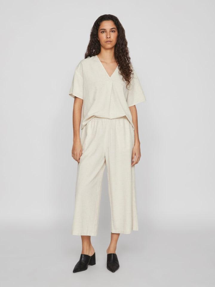 ---- Женская модная футболка с V-образным вырезом VIPRISILLA/S/1 - NOOS VILA с коротким рукавом и V-образным вырезом ----/ Изделие выглядит нормально. / Материал: 50% вискоза, 40% хлопок, 10% лен / Посадка: обычная / Застежка: без застежки 8540 / Инструкция по уходу: 30 ° C Материалы для машинной стирки