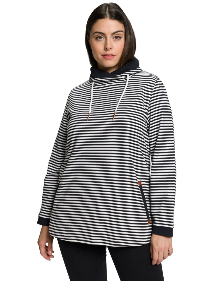 Толстовка классического кроя со спортивными полосками и завязкой на драпированном воротнике-стойке. 2 кармана, длинные рукава. Материалы