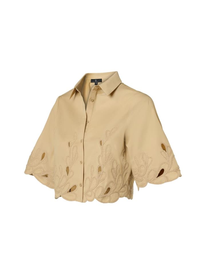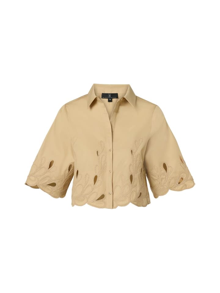 Блузка Tirzy песочного цвета просто необходима для создания элегантного и воздушного образа. Этот изысканный дизайн из последней коллекции Mart Visser отличается изысканным стилем благодаря тонким деталям вышивки на рукавах и подоле. Эти нежные штрихи придают блузке игривый, но в то же время шикарный характер и делают ее универсальным дополнением к вашему гардеробу. Застежка на все пуговицы спереди придает вневременной классический вид, а укороченный крой на бедре создает современный и привлекательный силуэт. Блузка изготовлена из дышащей смеси полиэстера и хлопка, что создает ощущение легкости и комфорта при ношении - идеально подходит для теплых дней.материал