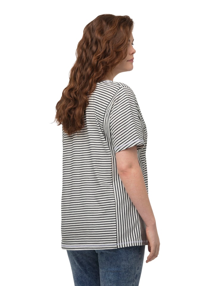Футболка из органического хлопка. Непринужденный свободный фасон с мелкими полосками. Круглый вырез, спущенная линия плеча, короткие рукава. Материалы: 100% хлопок.