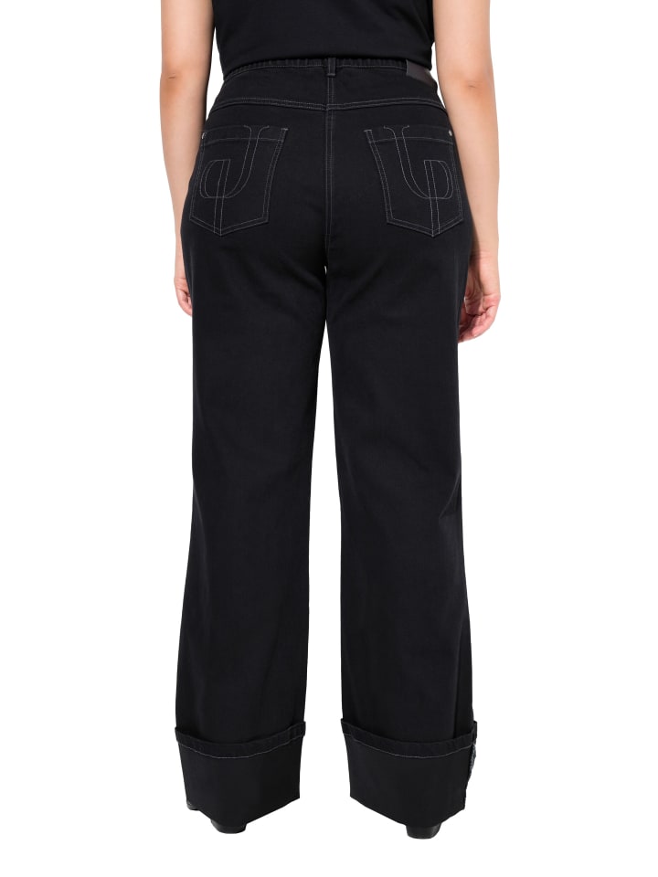 Джинсы Mary с удобными широкими штанинами и широким отворотом по низу. 5-карманный. Удобный пояс со шлевками, пуговицей и молнией. Материалы