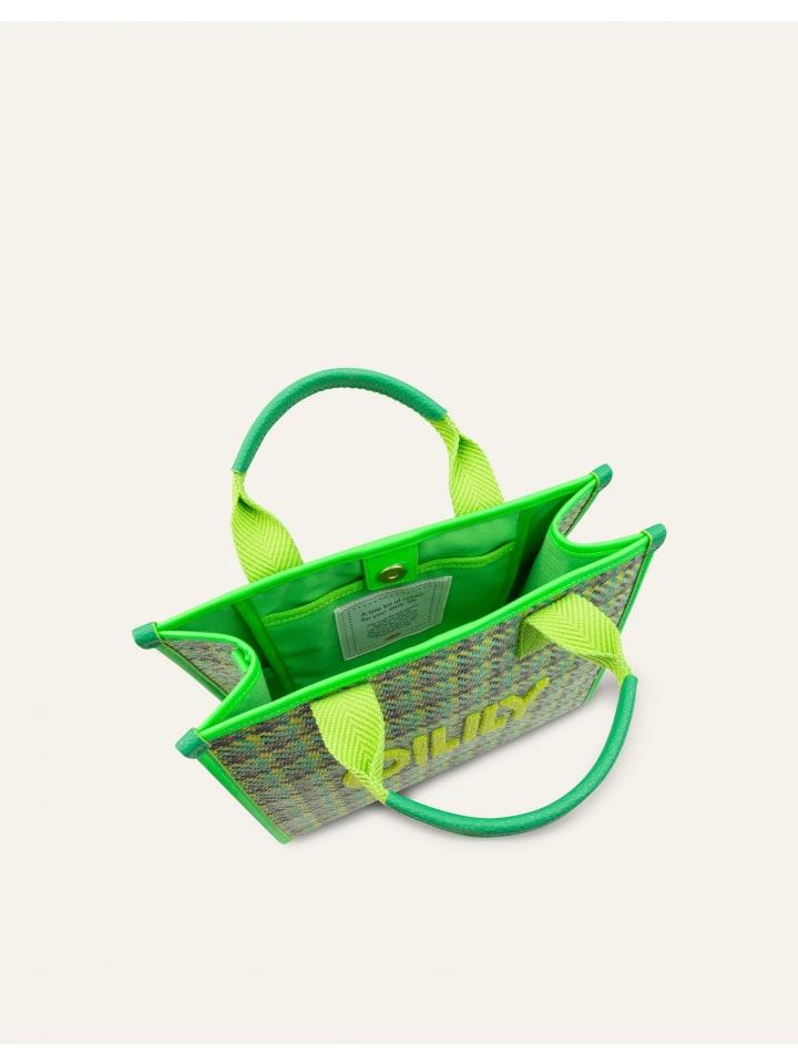 Сумочка в честь Oilily 60. Изготовлена из тканого полиэфирного трубчатого полотна с махровым логотипом. - Застежка-клипса - Высота ручки: 10 см - Нижние защитные штифты - Размеры (Ш x Г x В) 28 x 11 x 24 см - Вместимость: 7,4 л Материалы
