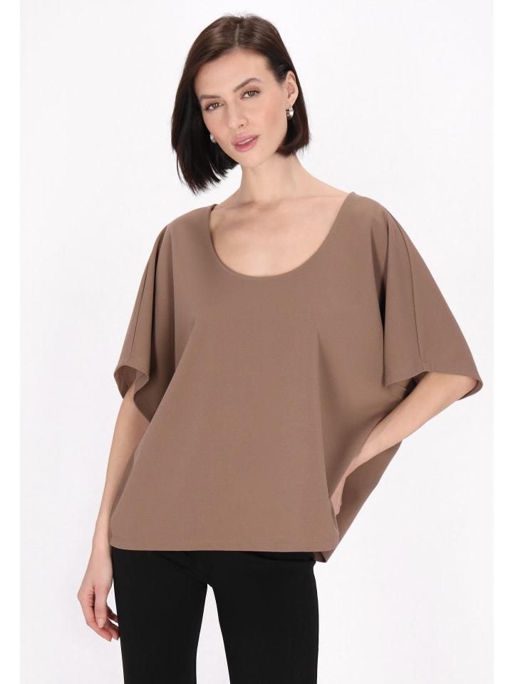 - Loose Fit Blouse With Scoop Neck And Short Sleeves