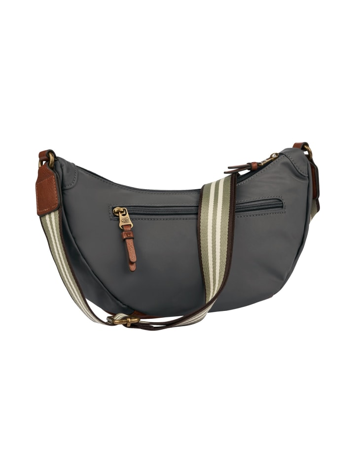 Эта сумка-бананка от Camel Active станет практичным спутником в повседневной жизни. Основное отделение на молнии сохранит все необходимое, а дополнительный передний карман обеспечит быстрый доступ. Еще одно отделение на молнии сзади обеспечивает дополнительное место для хранения вещей. Внутри имеется карман на молнии и карман для мобильного телефона, которые помогут поддерживать порядок в вещах. Благодаря фиксированному регулируемому плечевому ремню из ткани сумку удобно носить. Матовый нейлон и яркий полосатый дизайн завершают образ. - Полосатая тканевая лента как деталь дизайна