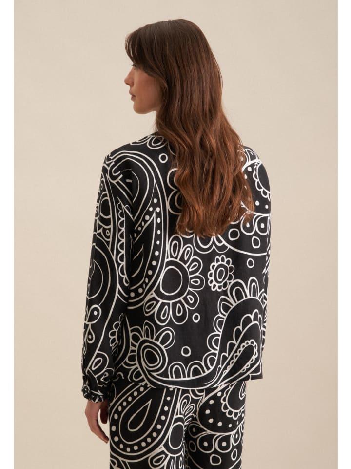 Дополнит ваш наряд, и его нельзя пропустить ни в одном гардеробе: эта блузка с воротником-стойкой из коллекции шелковых наклеек "Эффектные принты" отличается женственной элегантностью. Лен соткан с высокой плотностью, что делает его чрезвычайно прочным материалом. В сочетании со 100% льном он идеально подходит для деловой одежды, не требующей особого ухода. Благодаря крою Modern fit блузка с воротником-стойкой не такая обтягивающая и довольно облегающая, что создает оптимальный комфорт при ношении. Шикарный принт с рисунком - стильное дополнение. Неподвластный времени шик в сочетании с современной уверенностью в себе - элегантная блузка на все случаи жизни. Эта блузка с длинным рукавом и воротником-стойкой подчеркивает стильность и элегантность. Круглый вырез и воротник-стойка подчеркивают ностальгически-умный характер. Изысканные перламутровые пуговицы выглядят как ненавязчивые детали.