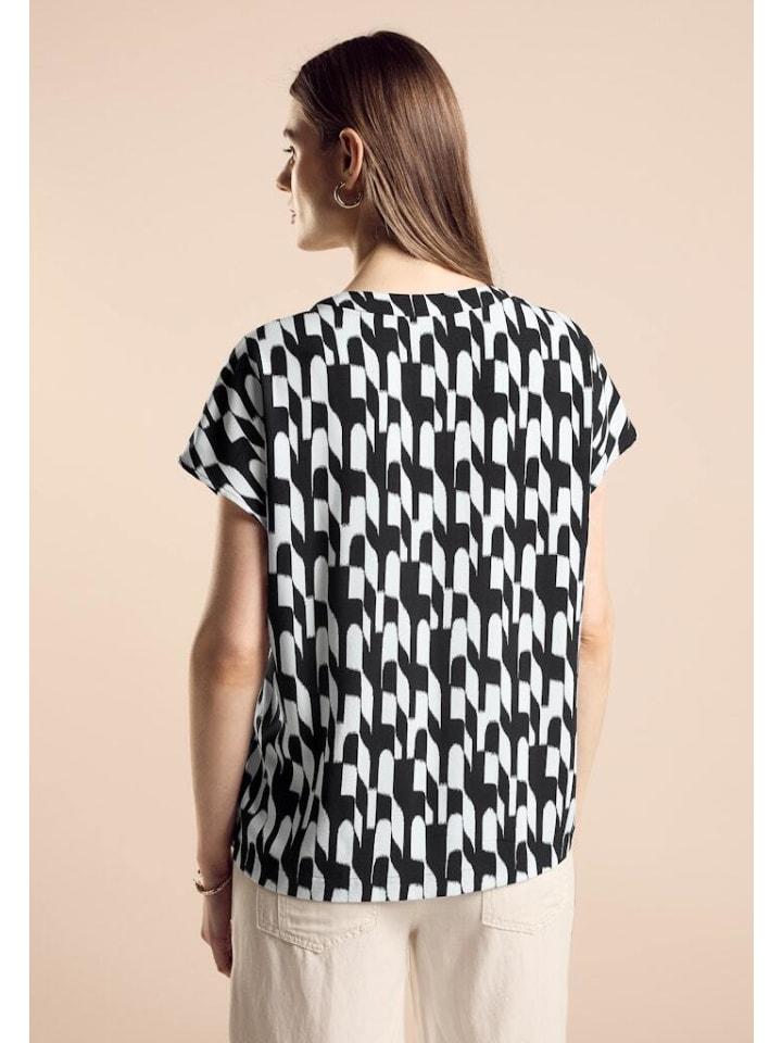 Женская блузка Street One Эта блузка-футболка с принтом от Street One - обязательный аксессуар для женщин, разбирающихся в моде. С круглым вырезом и разрезом спереди она не только придает современный вид, но и создает приятный комфорт при ношении. Блузка изготовлена из мягкой вискозы, которая легко ложится на кожу и идеально подходит для повседневной носки. Графический узор придает яркость любому наряду, придавая ему свежий и модный вид. Независимо от того, сочетаете ли вы их с джинсами, шортами или юбкой, эта блузка обязательно привлечет всеобщее внимание. Женская блузка Street One отличается универсальностью и может использоваться как в офисе, так и в свободное время. Она настоящий универсальный талант, который подчеркнет ваш индивидуальный стиль. Материал: 100% вискоза