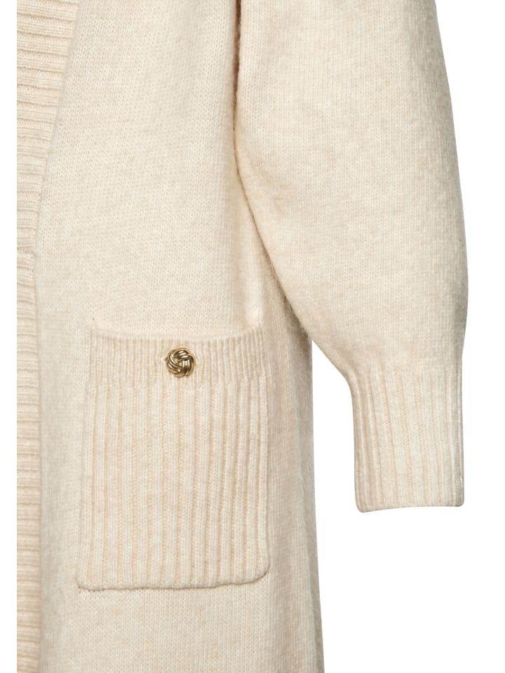 Лонгкардиган из Ласканы. Длина до икры, открытая форма. С золотыми пуговицами на карманах. Перекрытые плечи. Модные трикотажные детали в рубчик. Из уютного мягкого трикотажа.