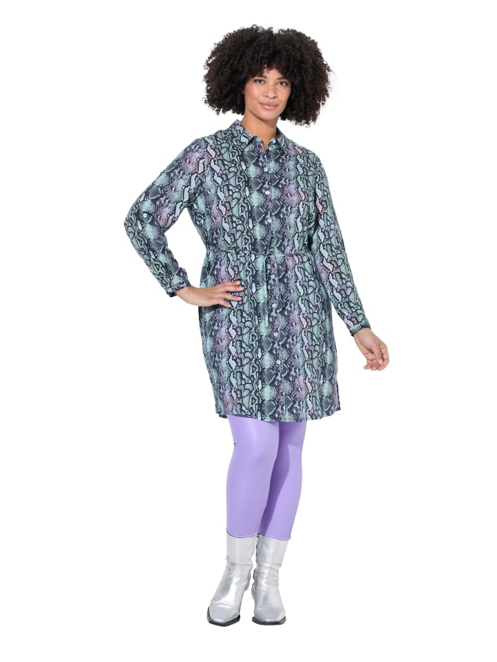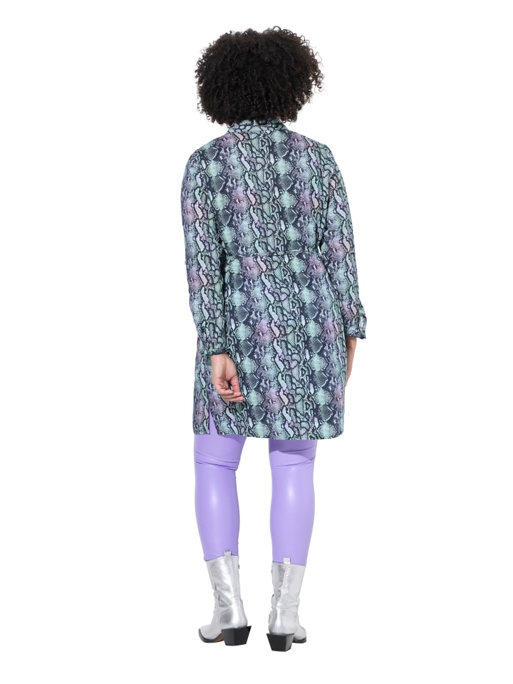 Блузка-рубашка, удобного кроя, из мягкого вискозного материала со змеиным рисунком. Воротник рубашки, планка на пуговицах, длинный рукав с манжетами и застежкой-молнией. Боковые прорези.материал