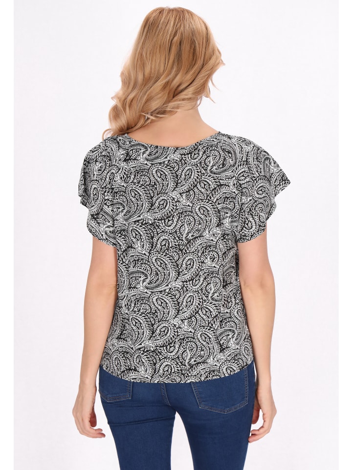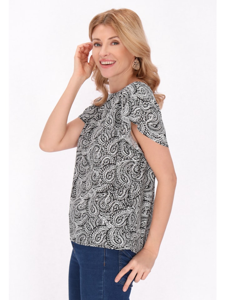 Introducing a stylish blouse that will enhance your closet with its regular fit and elegant boat neckline. Cap sleeves and ruffled details add femininity, while the woven paisley print brings boho ethno style. This chic blouse is perfect for creating trendy looks. This blouse is part of our Fashion Look Collection.