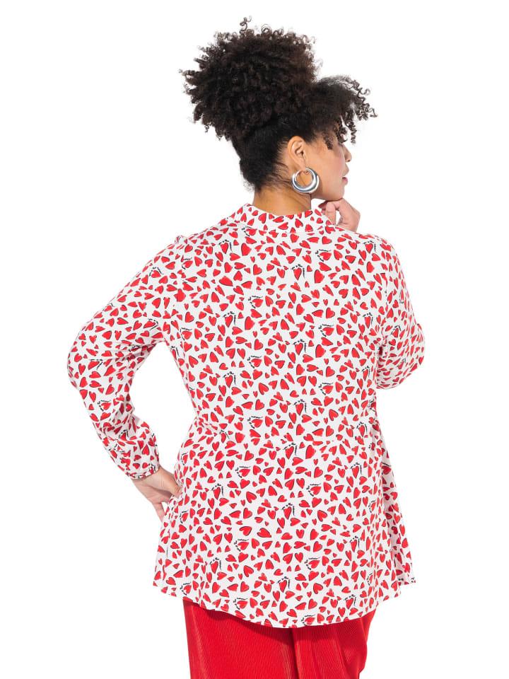 Блузка А-силуэта из мягкого вискозы с рисунком в виде сердца. Воротник рубашки с V-образным вырезом и планкой на половину пуговицы. Длинный рукав с эластичной отделкой.материал