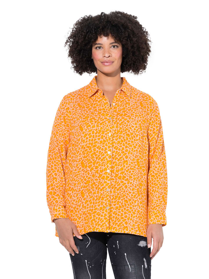 Муслиновая блузка большого размера из мягкого муслина с принтом Льва. Воротник рубашки, широкие плечи, длинные рукава с манжетами.материал
