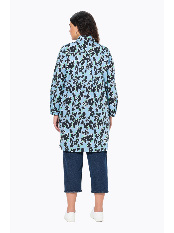 Длинная блузка, длинная А-силуэта, из мягкого хлопка с цветочным рисунком. Воротник рубашки, планка на пуговицах, закругленный подол с длинными разрезами по бокам - еще больше комфорта в носке. Длинный рукав с манжетами.материал