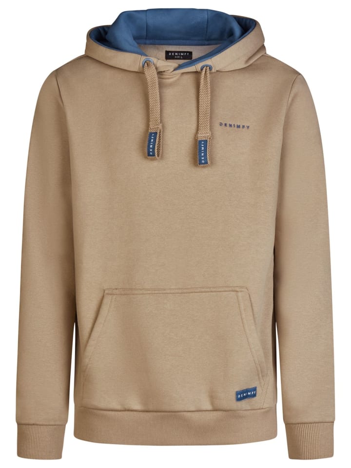 Толстовка для мужчин и мальчиков с модной вышивкой логотипа DENIMFY на груди - идеальный выбор на осень и зиму. Он приятно согреет вас в холодные дни. Капюшон с контрастной подкладкой и широким шнурком защищает от проникновения холодного воздуха. То же самое касается ребристых рукавов и манжет. Толстовку можно сочетать с повседневными нарядами, например, с простыми джинсами и кроссовками или зимней обувью. Хорошо сочетается как с зимним пальто, так и с зимней курткой.