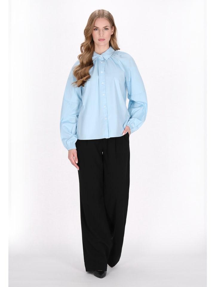 Introducing a versatile shirt with a loose fit and a classic collar. It presents long, voluminous sleeves with cuffs, which add to its elegance. The button-down front gives it a tailored look. Perfect for classic office styling or casual outings, this shirt combines comfort and style. It is part of the Classic Look Collection.