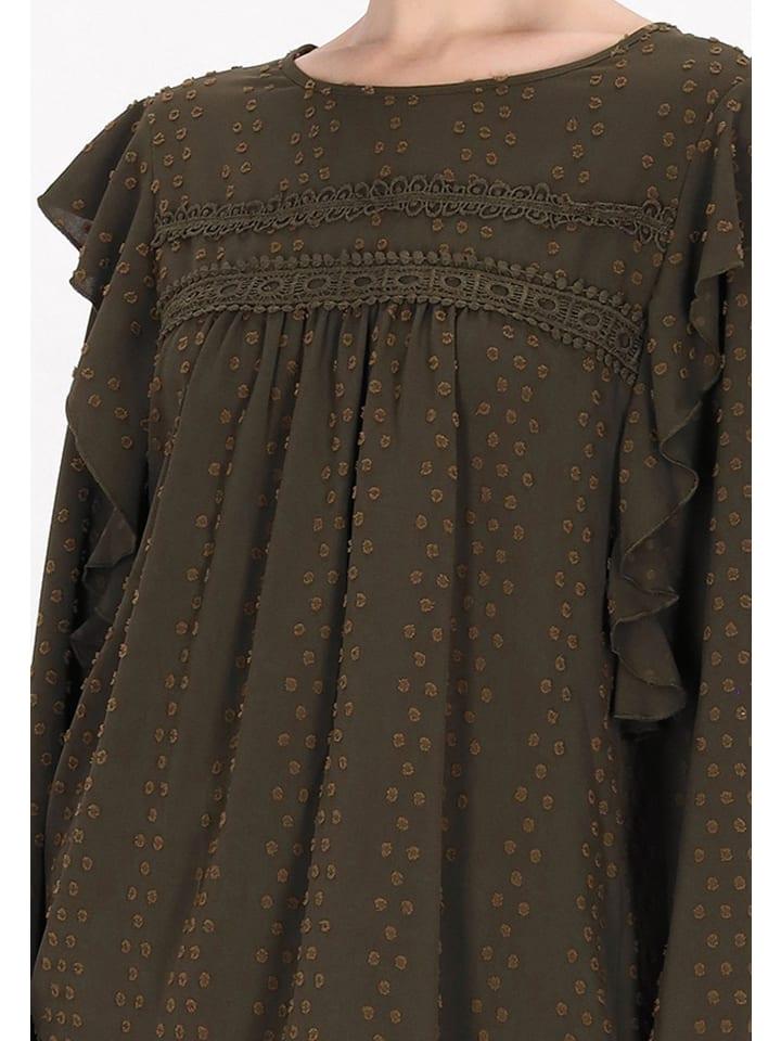 Discover a blouse that epitomises casual style and romantic charm. This blouse features a boat neckline, long sleeves and elasticated cuffs for comfort. Embellished with embroidered ribbon, ruffles, pleats and a polka dot pattern, this stylish blouse is perfect for casual styling. It presents a chic style that will work for romantic get-togethers. This blouse is part of the Fashion Look Collection.