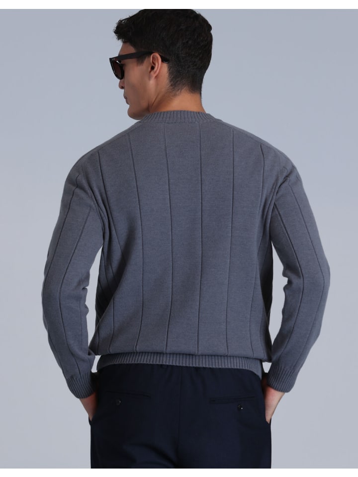 Свитер Light от Lufian впечатляет своим элегантным монохромным дизайном и тонким полосатым узором, создающим особую визуальную глубину. Классический круглый вырез подчеркивает неподвластный времени стиль, а высококачественный материал обеспечивает приятную легкость. Этот свитер станет идеальным выбором для изысканных повседневных образов или стильных повседневных нарядов и идеально сочетает в себе элегантность и комфорт. - Классический простой дизайн