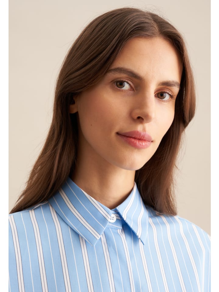 Женственная и элегантная: блузка-рубашка Silker Sticker из коллекции "Основы современности" добавит в ваш гардероб изысканный образ, отвечающий духу времени. Она может добавить вашей простой элегантности в офисе. Саржа соткана особенно качественно. В сочетании со 100% хлопком он удобен в носке и обладает необычайно прочной структурой с закругленными краями. Характерный полосатый узор делает их абсолютно необходимыми. Классический шик в сочетании с актуальной уверенностью в себе - стильная блузка на многие случаи жизни. Для любителей элегантного образа эта блузка-рубашка с длинным рукавом - очень хороший выбор. Воротник блузки-рубашки подчеркивает женственно-классический характер. Кроме того, использовались изысканные перламутровые пуговицы.