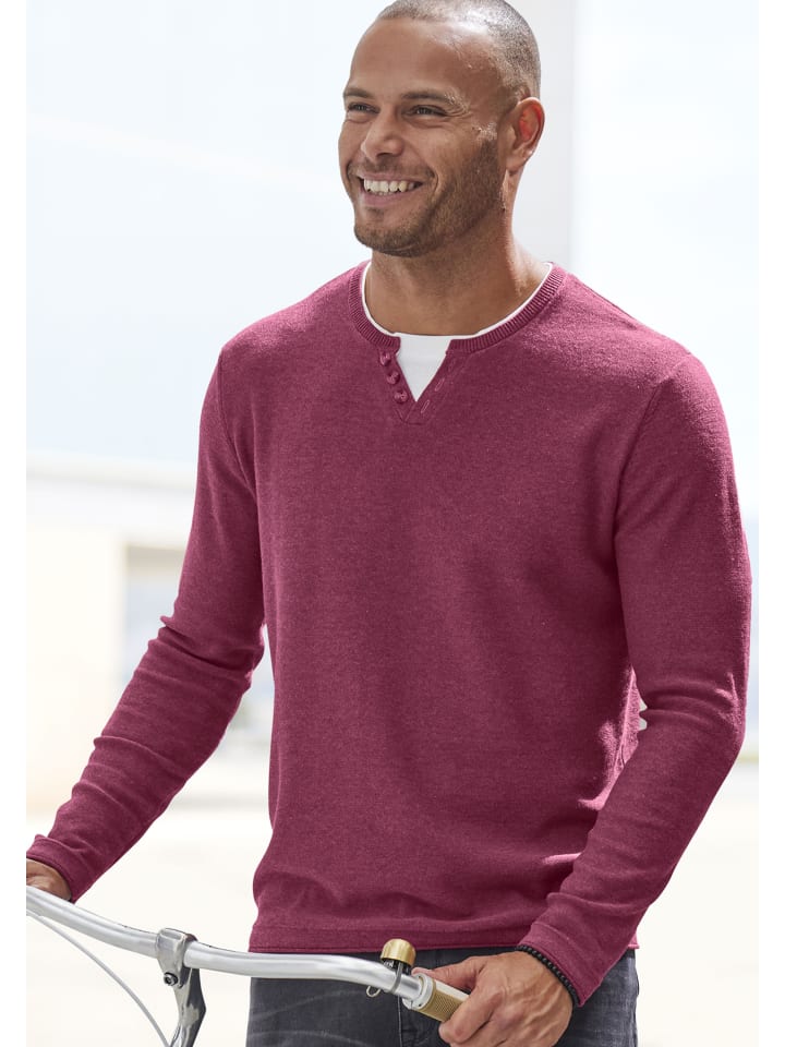 Повседневный свитер тонкой вязки от HIS с пуговицами и стильным двухслойным дизайном на круглой горловине. Корпус и рукава заканчиваются небольшим закругленным краем. Отлично подходит для досуга. Удобное качество.
