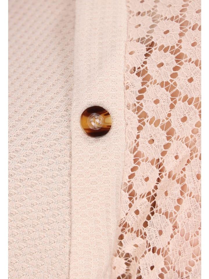 Discover a stylish blouse designed for the fashion-forward woman. This plus-size piece features a round neck and long sleeves, enhanced by elegant lace panels on the shoulders. The waffle knit texture adds depth to its plain design, while decorative buttons and gathered cuffs elevate its casual yet chic vibe. Ideal for everyday fashion from our Plus Size Collection.