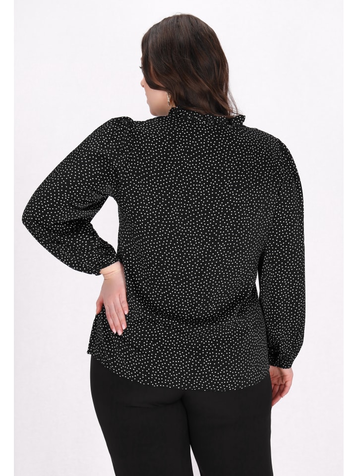Discover the elegance of this stylish plus-size blouse from our Plus Size Collection. With a notched neck and long sleeves, it offers a flattering silhouette. The woven fabric features a charming dots print, while elastic cuffs add chic. This elegant piece is perfect for pairing with fitted pants for a chic fashion look that stands out.