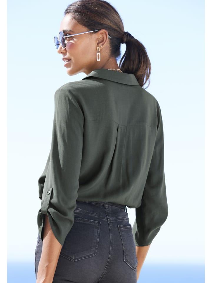 Блузка от Ласканы. Вырез лопаты с воротником блузки-рубашки. Рукава 3/4 с завязками на пуговицах. Спинка подходит и сжимается складкой. Закругленный подол. Прямая посадка. Легкая вискоза.