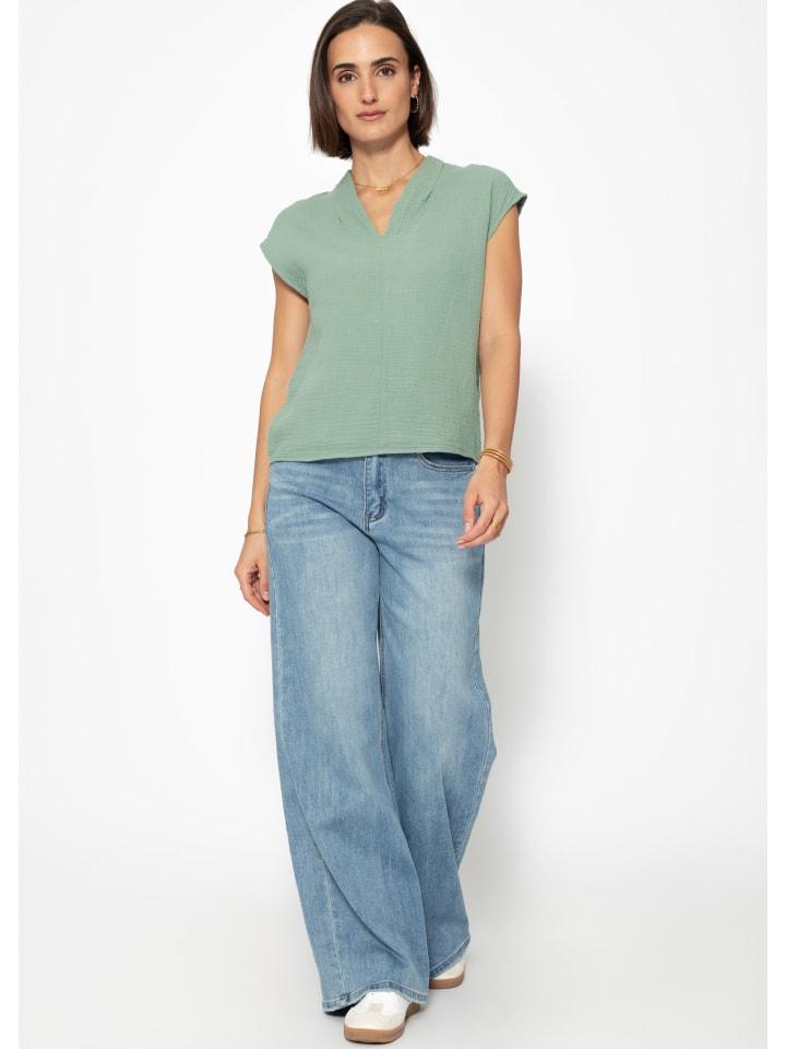 Эта муслиновая рубашка без рукавов отличается легким текстурированным качеством и неподвластным времени элегантным дизайном. Глубокий, но сдержанный V-образный вырез придает стильный вид, а свободная посадка обеспечивает комфортную свободу движений. Разделительный шов, расположенный по центру спереди, создает тонкие акценты и гармонично завершает дизайн. Универсальный предмет первой необходимости для весны, который не должен отсутствовать ни в одном гардеробе.
