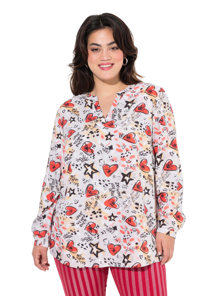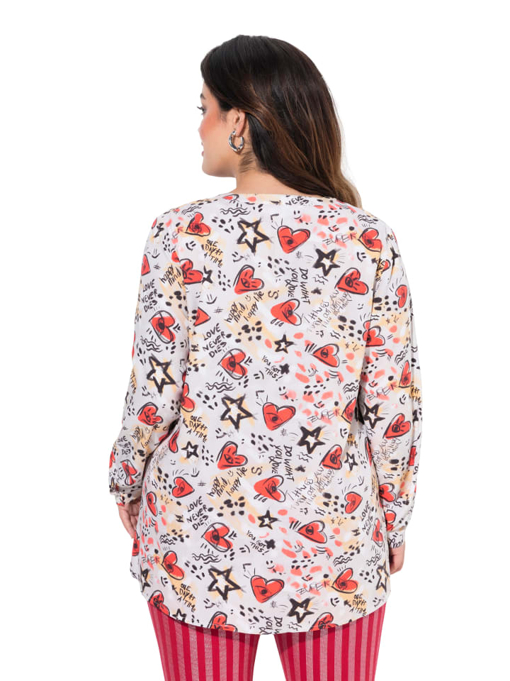 Туника, удобного кроя, из мягкой вискозы с принтом в виде граффити в форме сердца. Вырез туники, длинный рукав с манжетами.материал