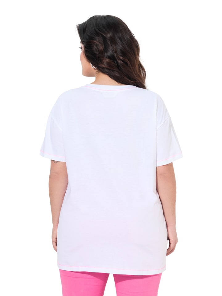 Футболка квадратной формы из мягкого джерси с неоновым коктейльным мотивом. Круглый вырез, плечи внахлест, полурукавки.материал