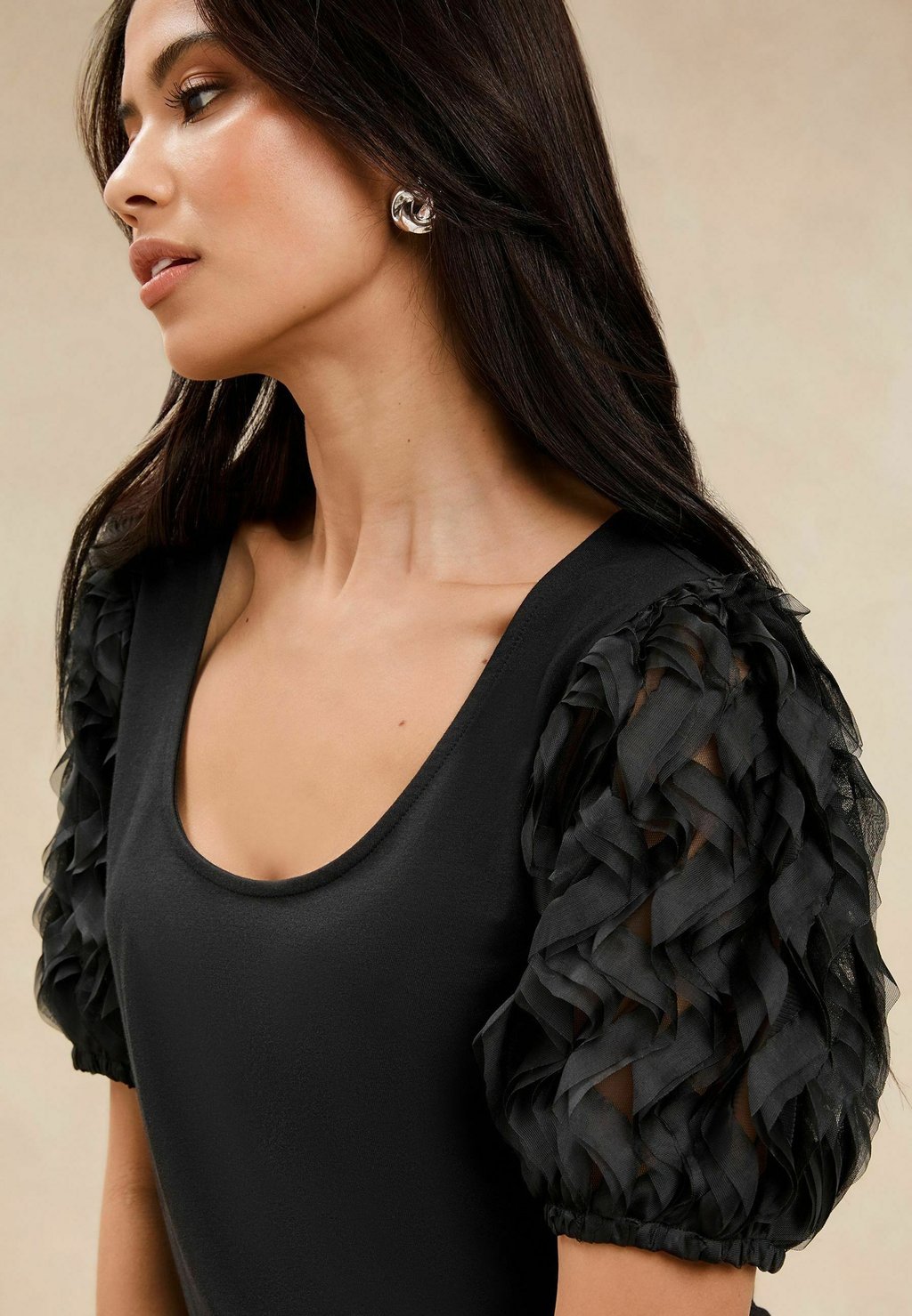 Футболка с принтом 3D PUFF SLEEVE Lipsy, черный