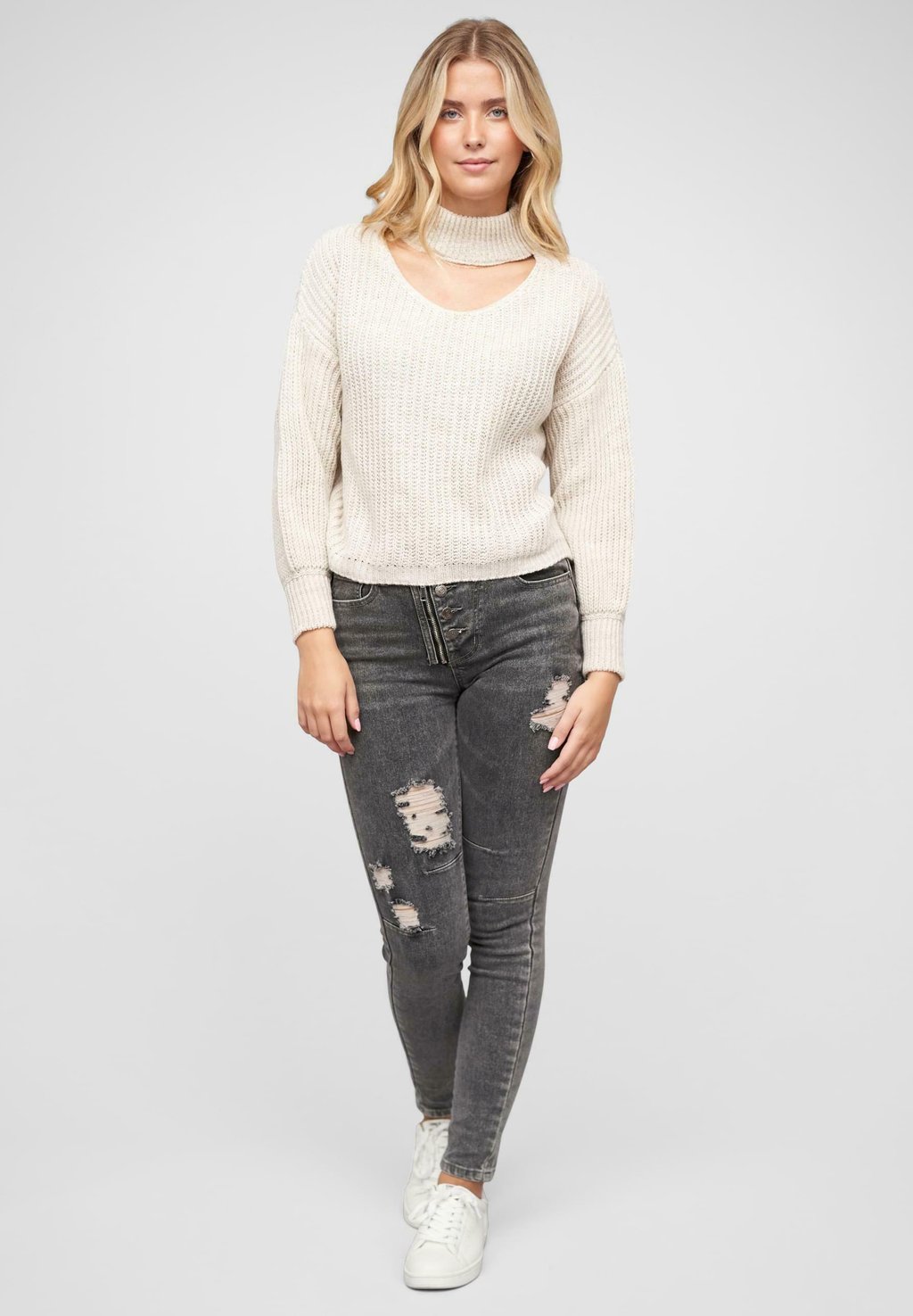 Джемпер MIT STEHROLLKRAGEN UND V-AUSSCHNITT Cloud 5ive, бежевый