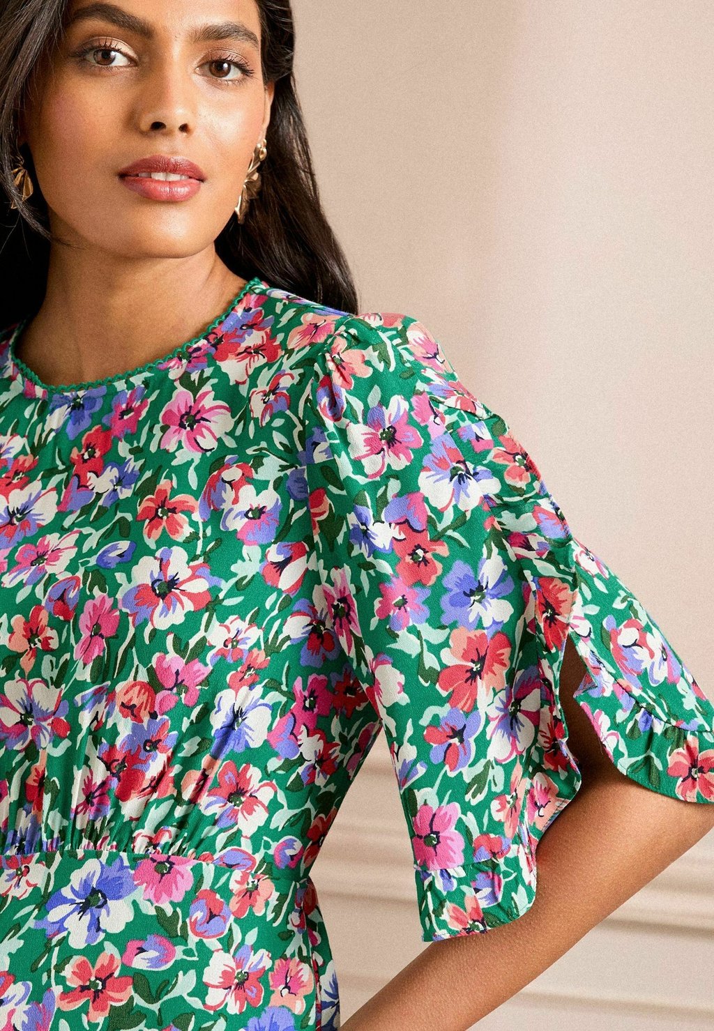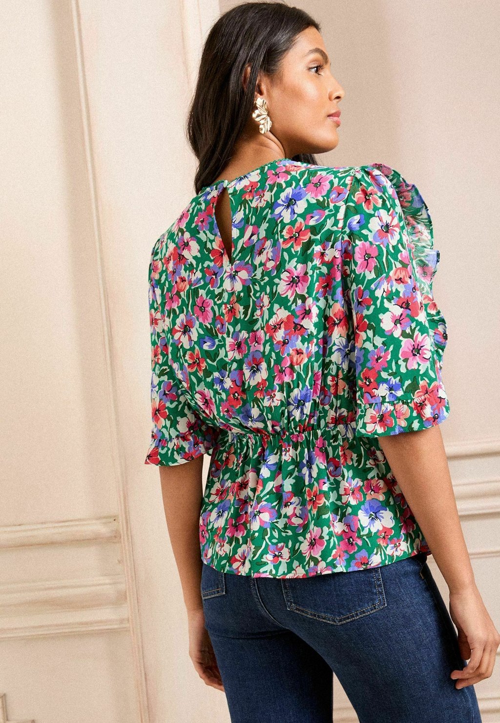 Блуза PRINTED RUFFLE DETAIL CREW NECK TEA Love & Roses, зеленый