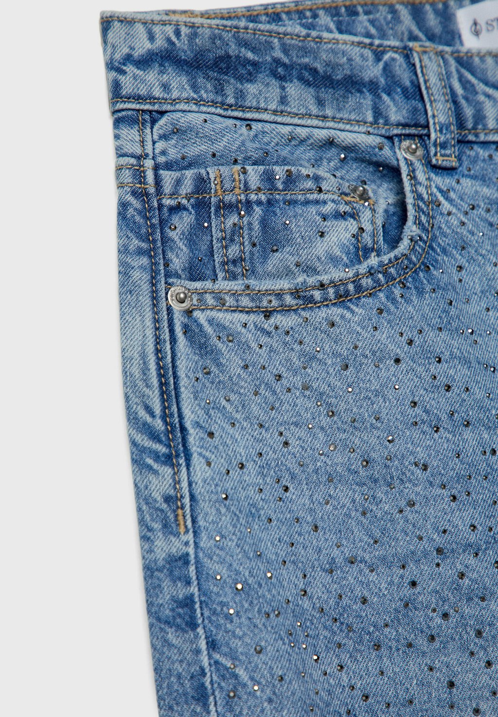 Джинсы прямого покроя WITH RHINESTONES  Stradivarius, деним
