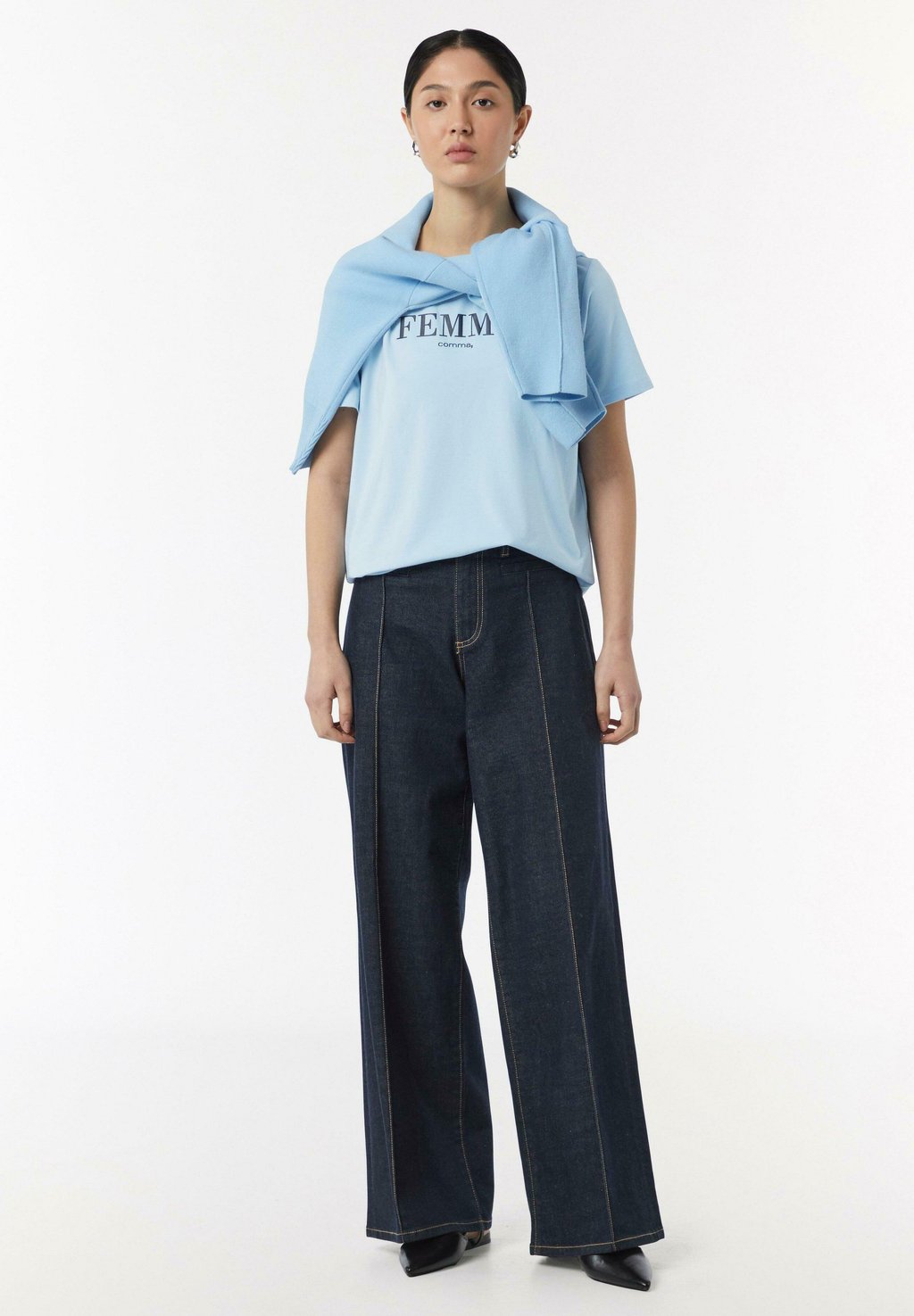 Футболка с принтом comma, светло-голубой