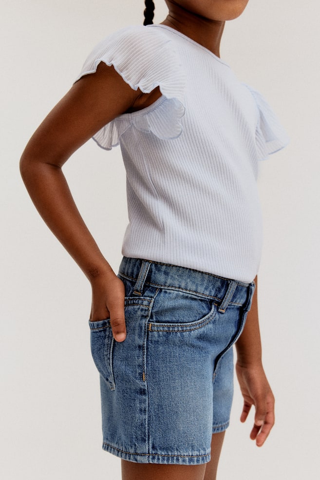 Бренд: H&M Цвет: синий Состав: Хлопок 100% Другая информация о материале Общий вес этого продукта содержит не менее: 20% переработанного хлопка Вес мелких деталей, таких как нитки, пуговицы, молнии, украшения и принты, не учитывается. Общий вес продукта рассчитывается путем сложения веса всех слоев и основных компонентов. На основании этого мы рассчитываем, какая часть этого веса приходится на каждый материал. При расчете комплектов и мультипаков все изделия учитываются вместе как один товар. Материал: Джинсовая ткань