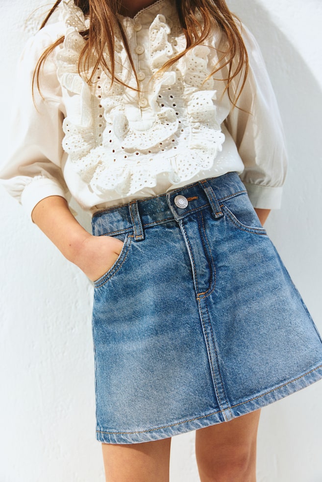 Бренд: H&M Цвет: синий Состав: Внешний слой: Хлопок 100% Подкладка карманов: Полиэстер 65%, Хлопок 35% Другая информация о материале Общий вес этого продукта содержит не менее: 41% Вторичного полиэстера 7% Вторичного хлопка Вес мелких деталей, таких как нитки, пуговицы, молнии, украшения и принты, не учитывается. Общий вес продукта рассчитывается путем сложения веса всех слоев и основных компонентов. На основании этого мы рассчитываем, какая часть этого веса приходится на каждый материал. При расчете комплектов и мультипаков все изделия учитываются вместе как один товар. Материал: Хлопок, Джинсовая ткань