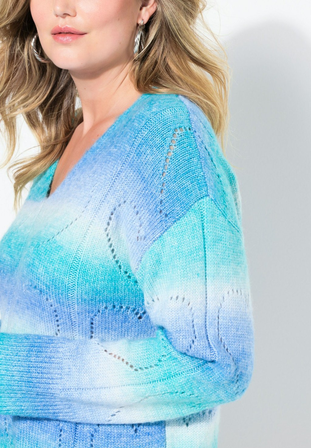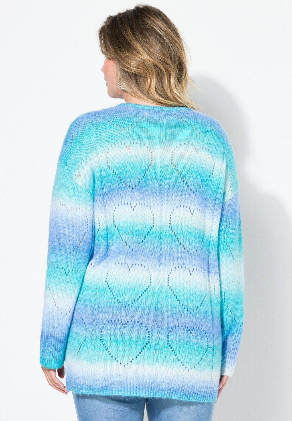 Свитер LONG-SLEEVE V-NECK WITH HEART AJOUR PATTERN MIAMODA, синий